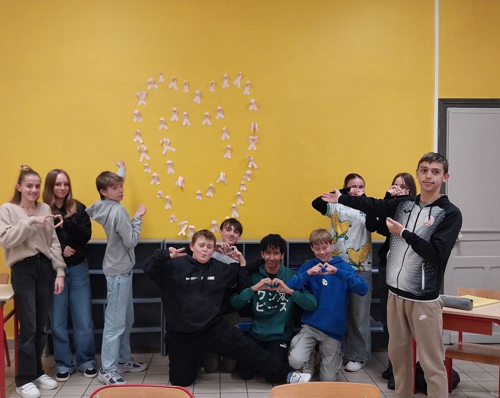 Nous sommes fiers grâce à l’ investissement des élèves pour la réalisation des broches ruban rose et bracelets et la vente de ces derniers d’avoir pu remettre la somme de 200 euros à l’ association ESPACE RESSOURCES CANCER dans le cadre d’ OCTOBRE ROSE.